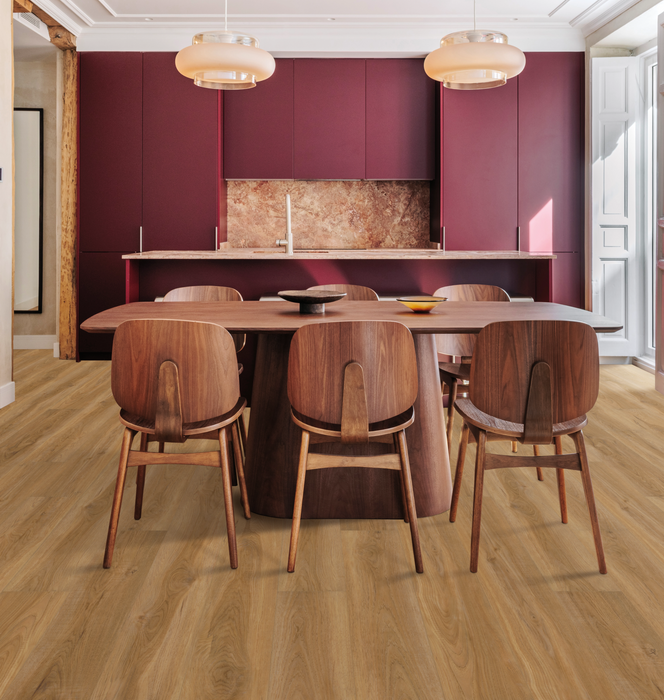 Outpost Hickory brings a warm, sun-baked hickory look with a clean, natural feel. Its honey-toned base and gentle grain add character without overpowering the room, making it an easy match for modern, transitional, or relaxed rustic spaces. Outpost Hickory works especially well in open living areas, kitchens, and hallways where you want a welcoming foundation that still looks pulled together. It’s comfortable underfoot, designed for everyday traffic, and keeps the space feeling bright, grounded, and easy to live in.